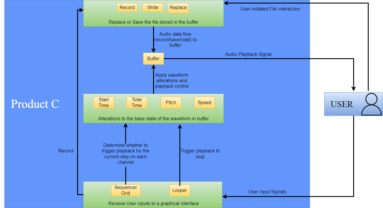 Product C is a dynamic and versatile software solution, seamlessly integrating a custom sampler, step sequencer, and live looper within a unified interface. Developed using the Max/MSP/Jitter object-oriented programming environment, the software is meticulously crafted to deliver a flexible and user-friendly experience.